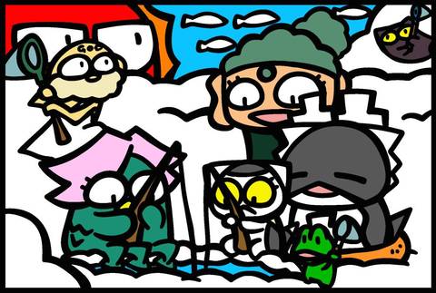 >いわし雲流れるお空でみんなに労られてる松子さんとクロさん、ホッコリの図~♪