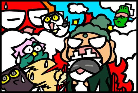>あはは~ 腹踊り神様お父ちゃんの後ろで メラメラ仏お母ちゃん(^o^)