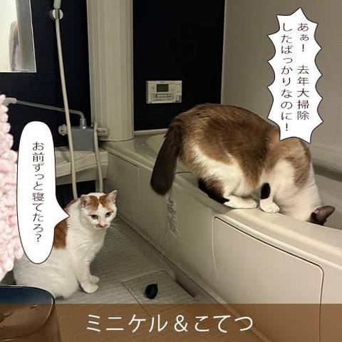 ミニケルちゃん、こてつちゃん、かわゆい♪お風呂場掃除は、ほどほどに日向ぼっこしておいで~♪